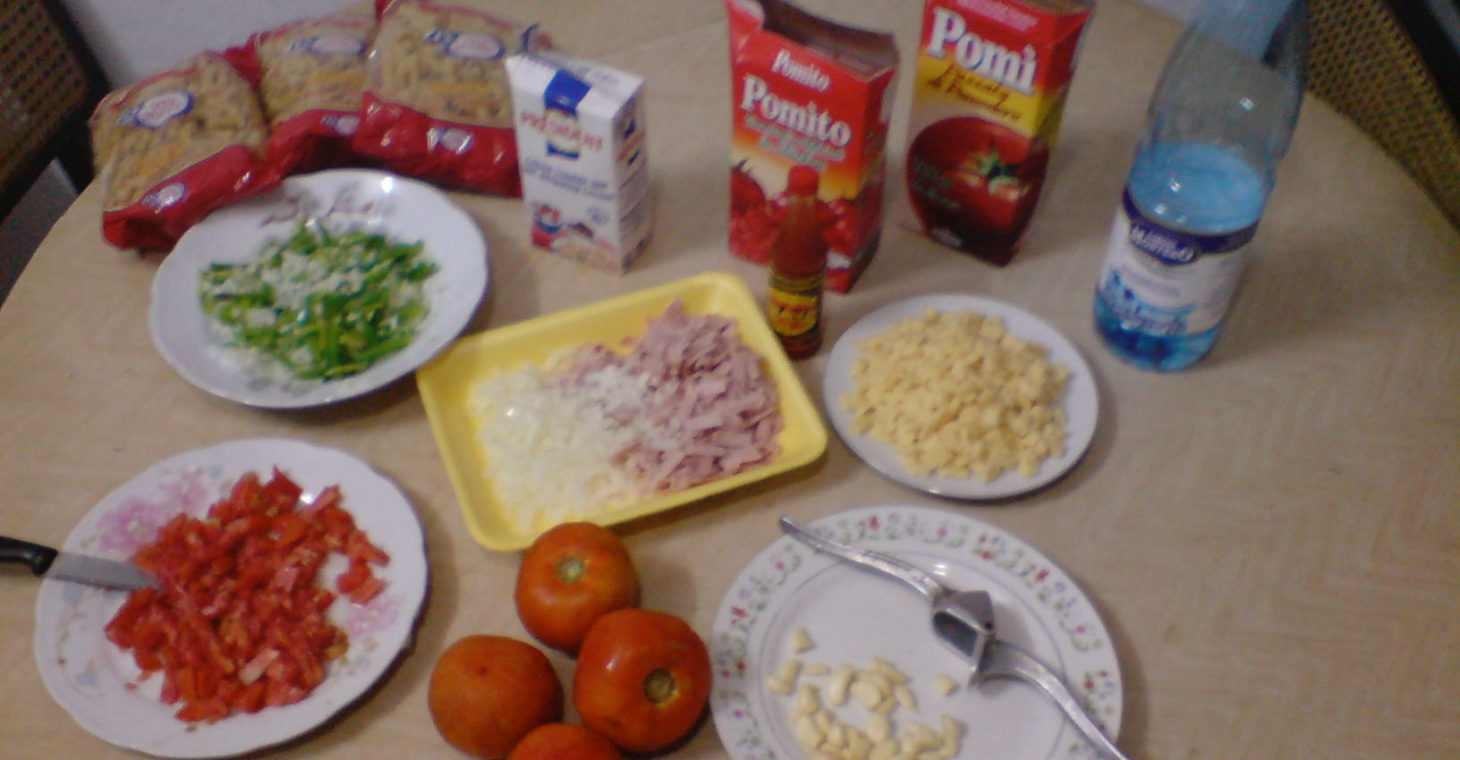 Ich begann mit der Sauce „Al Aribiata“, machte gleichzeitig noch die „Napoli“ Sauce. Diese stellte ich dann beiseite, war schnell gemacht und machte anschliessend die „Carbonara“ Sauce mit echtem Rahm:-)!